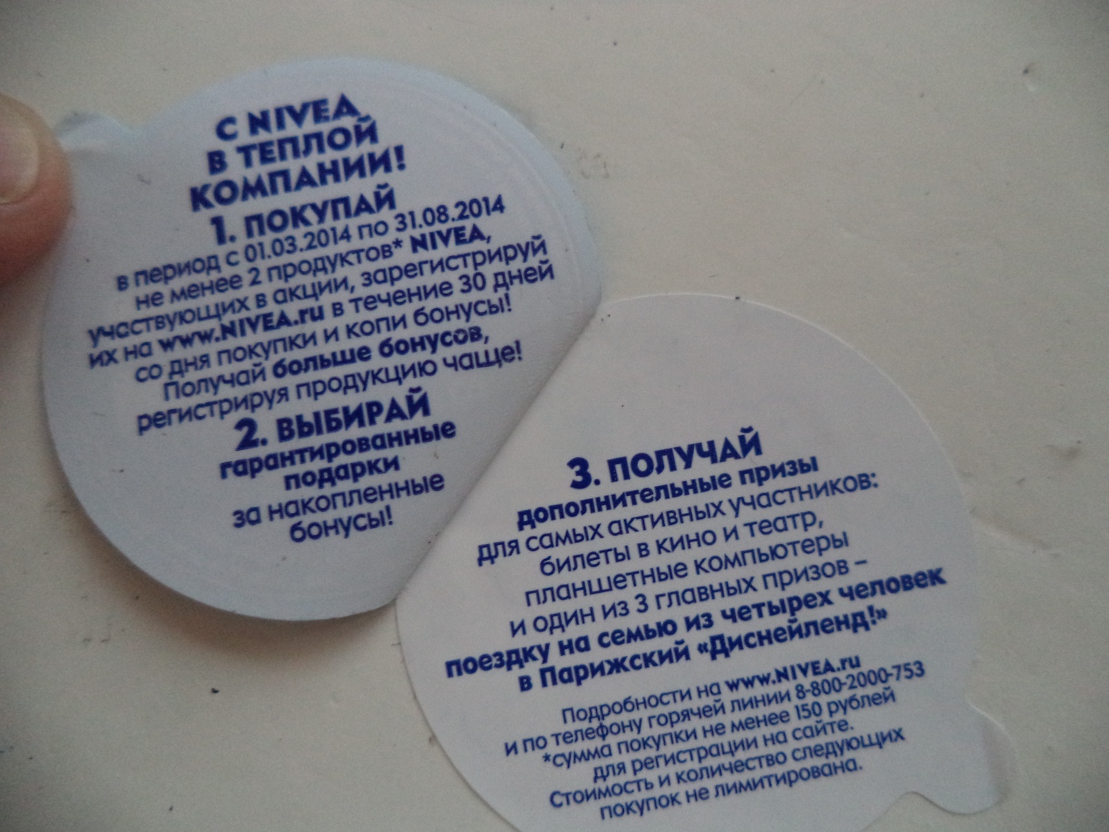 Подробности на www.nivea.ru и по телефону горячей линии 8-800-2000-753 для регистрации на сайте.
