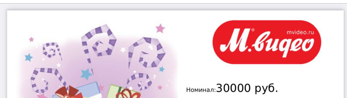 - Электронный сертификат М.Видео 30 000 рублей - 9 шт.;