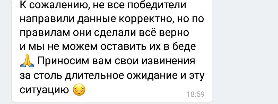 Я отправил расписку на почту, как написано в правилах, однако они решили ввести форму, а многие участники либо пропустили письмо, либо письмо попало в спам.