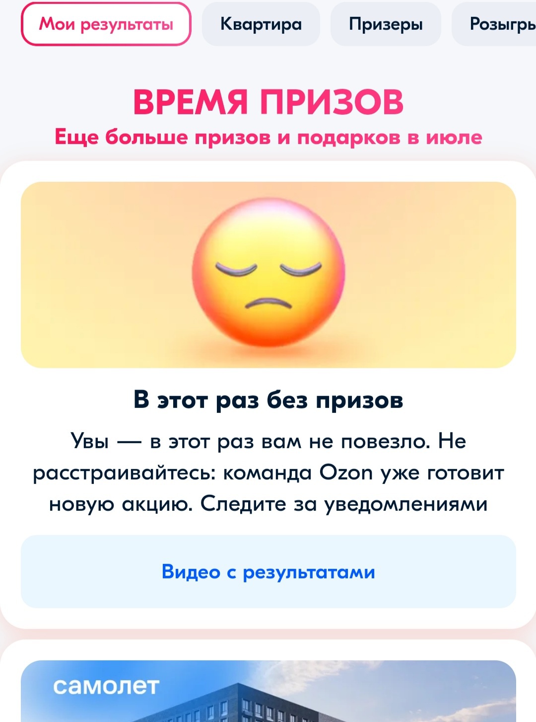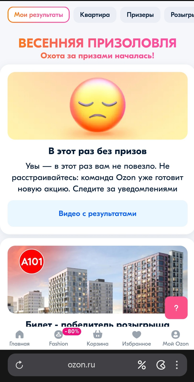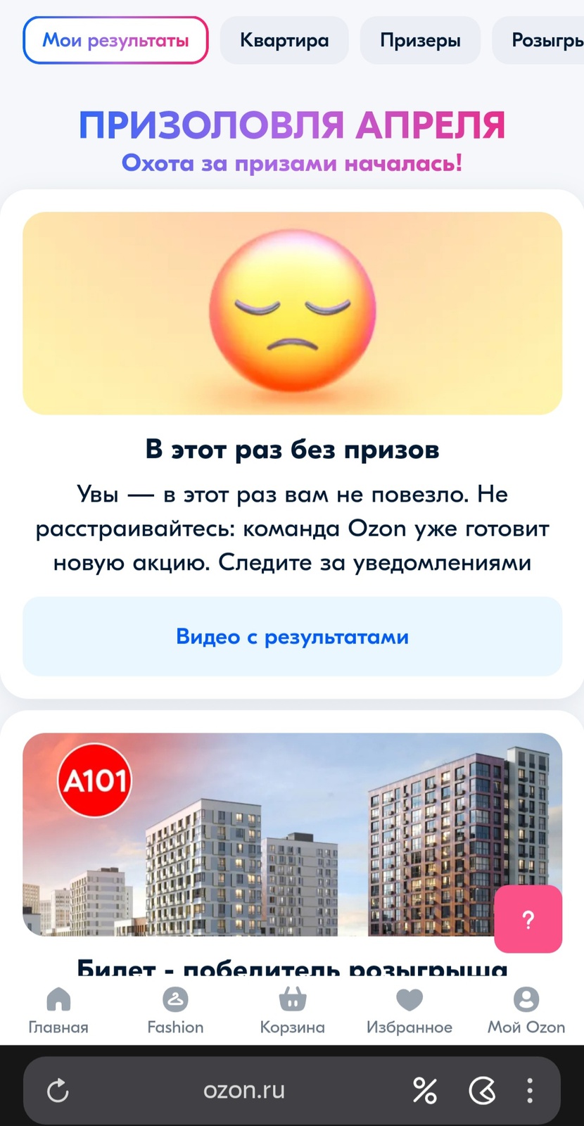 Увы — в этот раз вам не повезло. Не расстраивайтесь: команда Ozon уже готовит новую акцию