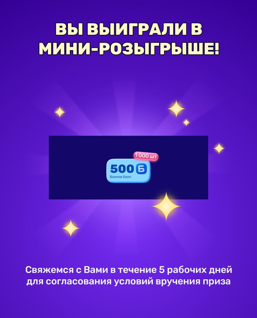 - Промокод на 500 Баллов Ozon - 5000 шт.;