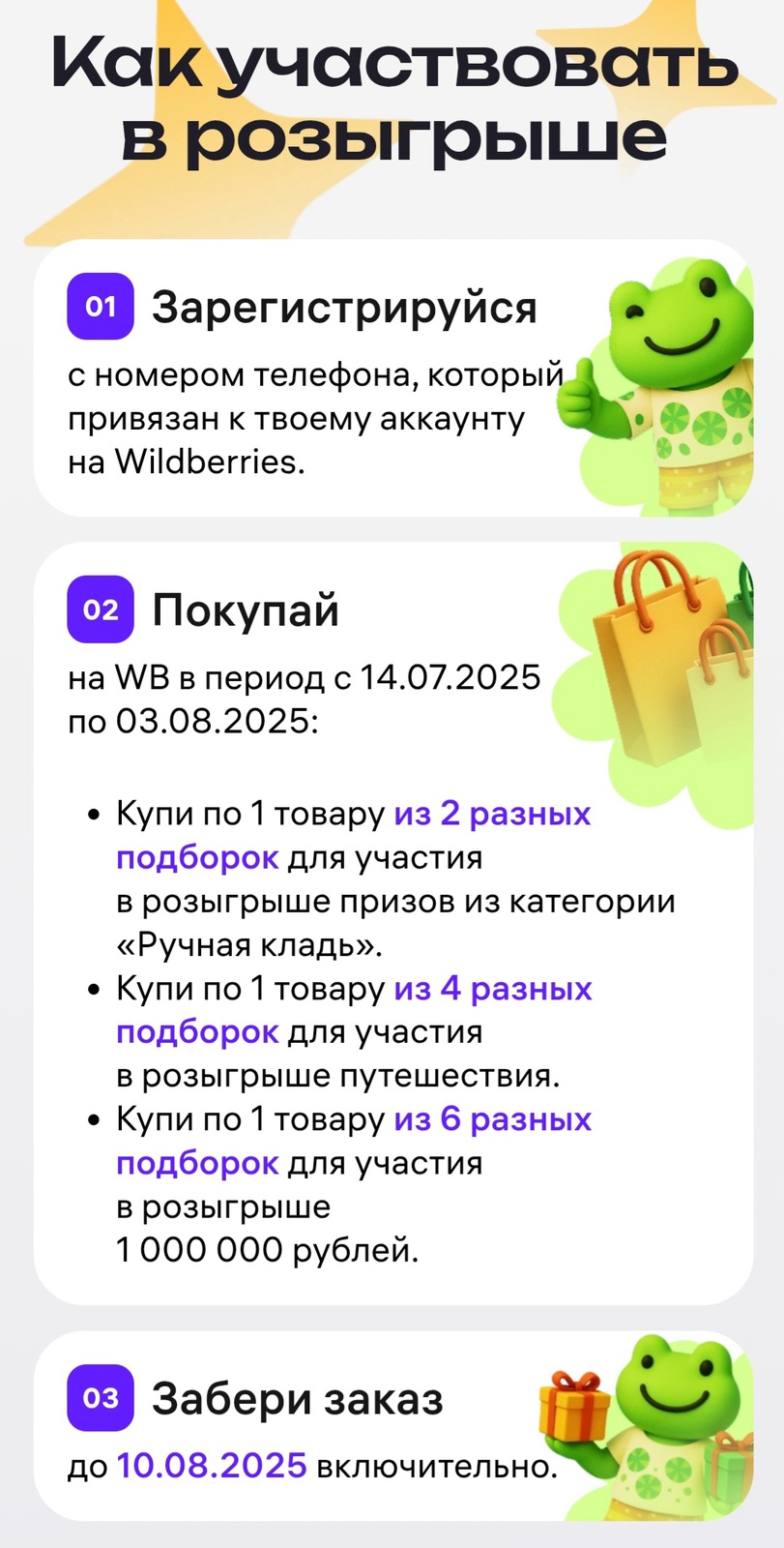 Покупайте товары на WB и участвуйте в розыгрыше миллиона рублей, путешествия мечты и других призов!