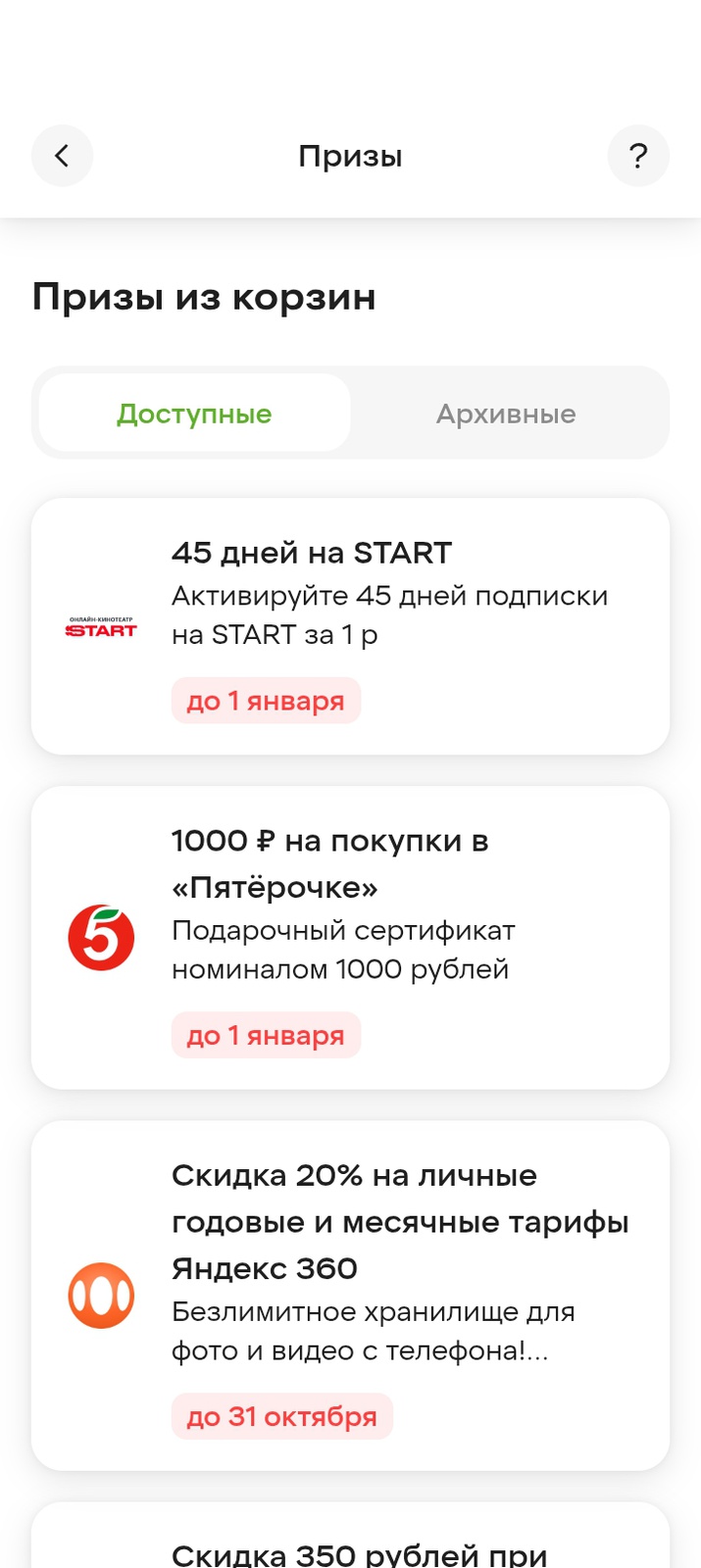 - У корзин и призов есть срок действия - успевайте забрать, иначе они станут недоступны.