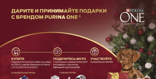 - Поделитесь фото с питомцем и кормом Purina One в Instagram с хештегом #ВНовыйГодСPurinaONE;
