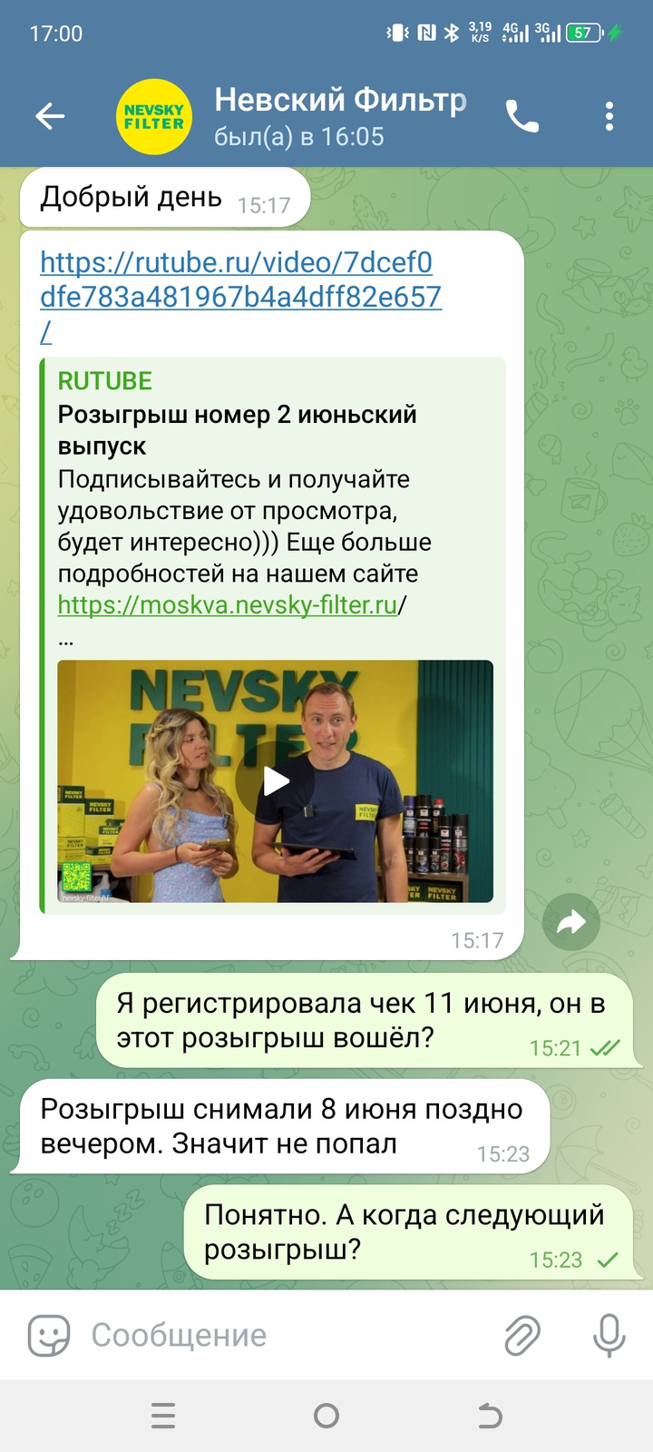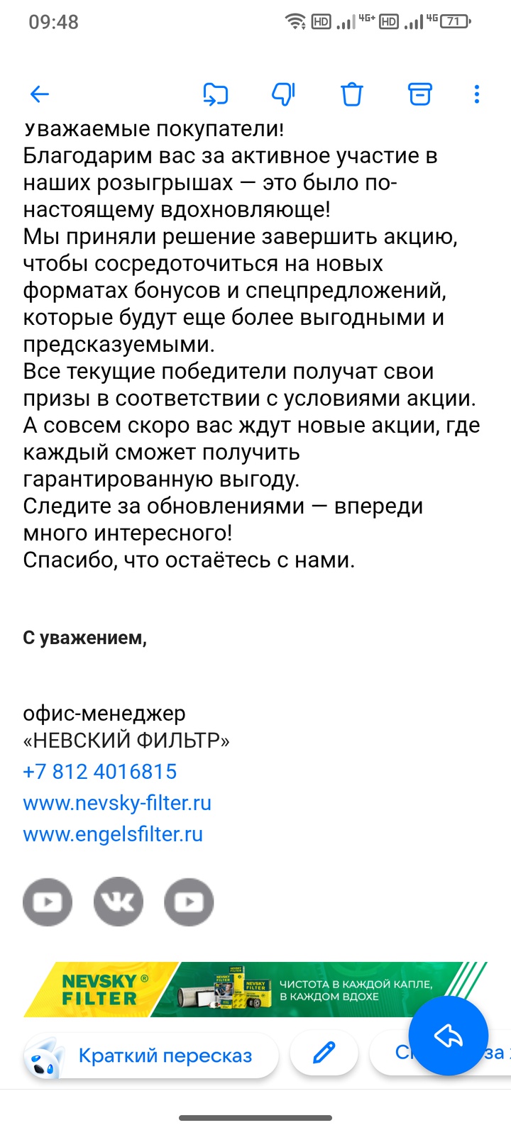 И в ВК https://vk.com/nevskyfilter в сообщениях тоже отвечают.