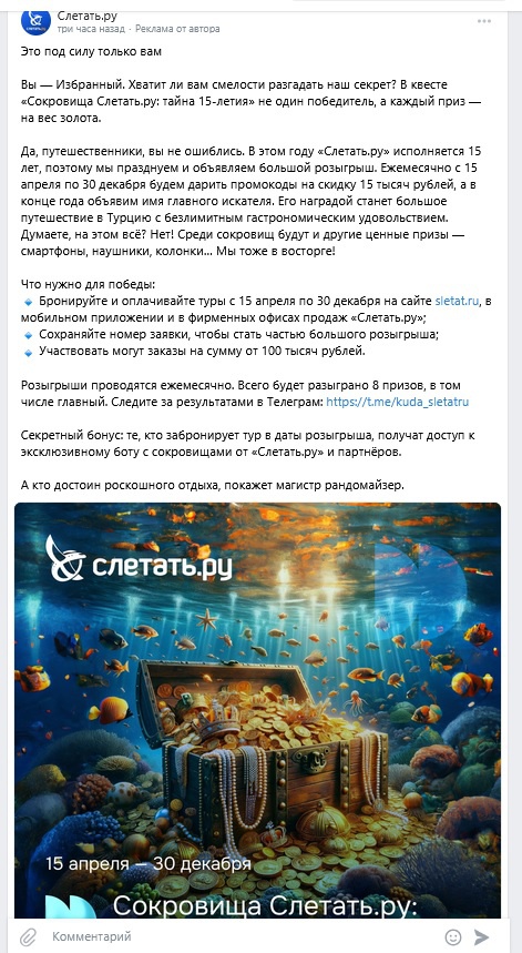 "... Думаете, на этом всё? Нет! Среди сокровищ будут и другие ценные призы — смартфоны, наушники, колонки… Мы тоже в восторге!... "