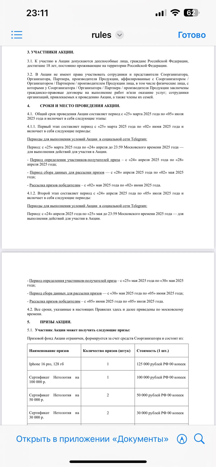 Участие в акции: