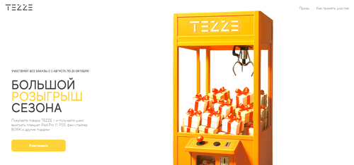 Покупайте товары TEZZE – и получайте шанс выиграть планшет iPad Pro 11, PS5, фен-стайлер BORK и другие подарки.