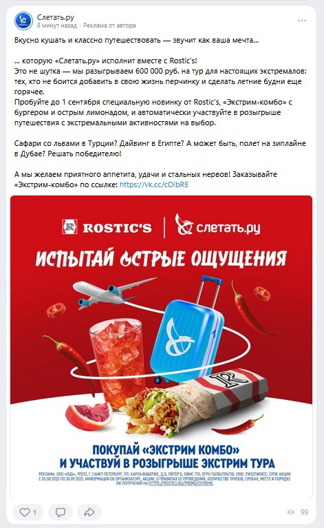 … которую «Слетать.ру» исполнит вместе с Rostic's!