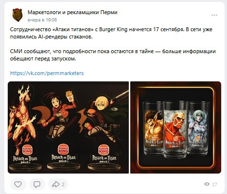 Коллаборация «Атака титанов х Burger King» пройдёт в сентябре.