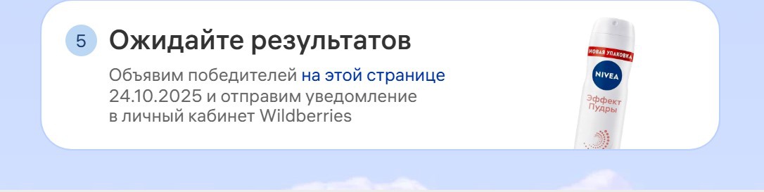 2. Получить предсказание от NIVEA на странице https://specials.wildberries.ru/promo/nivea.