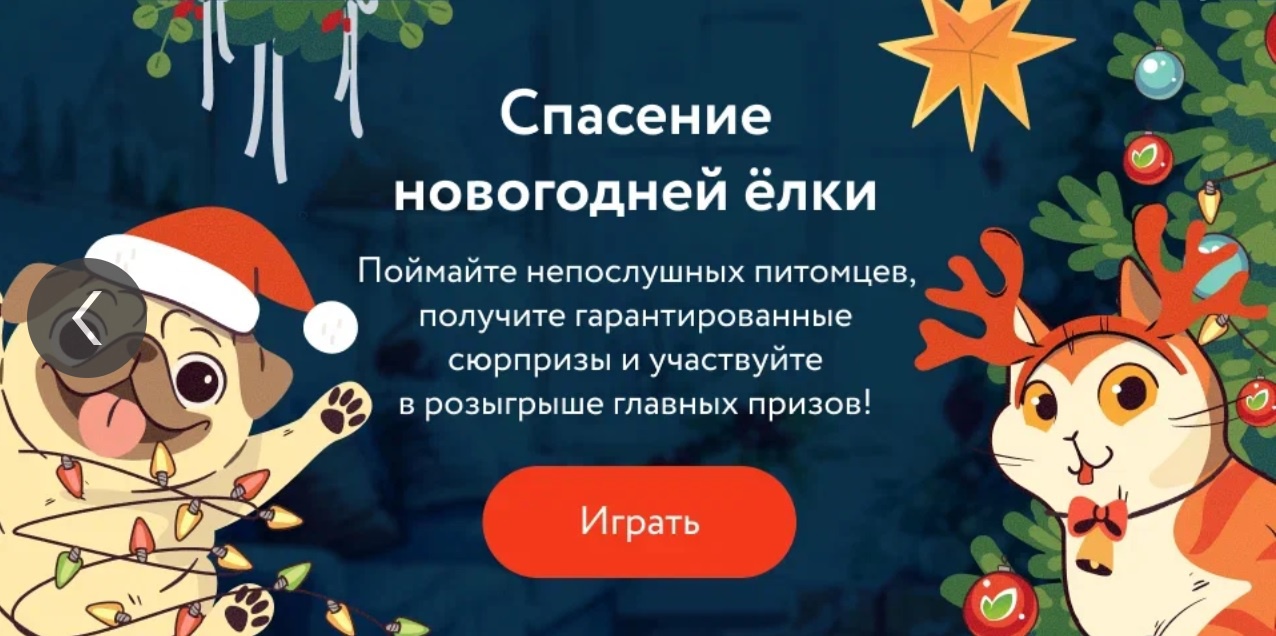 Спасение новогодней елки. Поймайте непослушных питомцев, получите гарнатированные сюрпризы и участвуйте в розыгрыше главных призов!