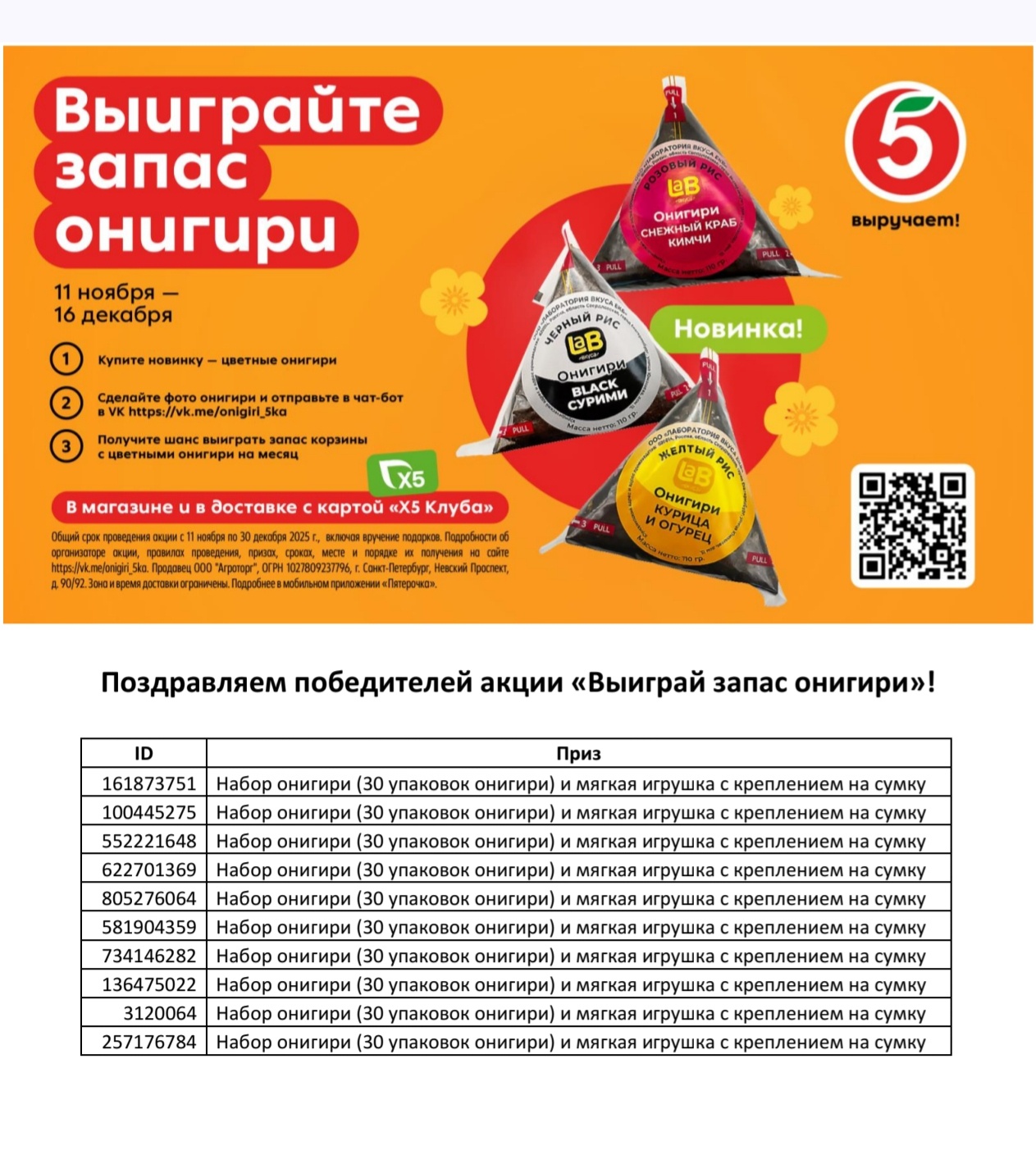 Покупайте готовое блюдо онигири в "Пятерочках" и выигрывайте призы.