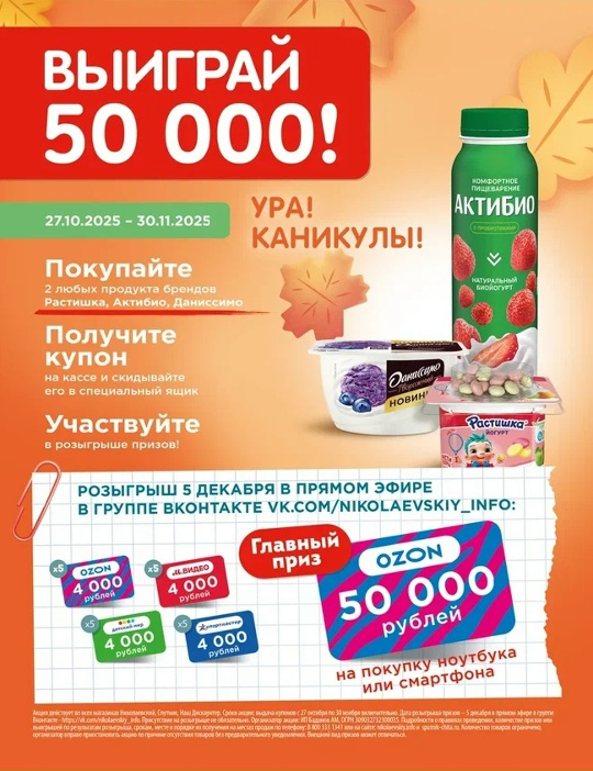 Купи 2 любых продукта Растишка, Актибио или Даниссимо — получи купон в специальный ящик — и участвуй в розыгрыше!