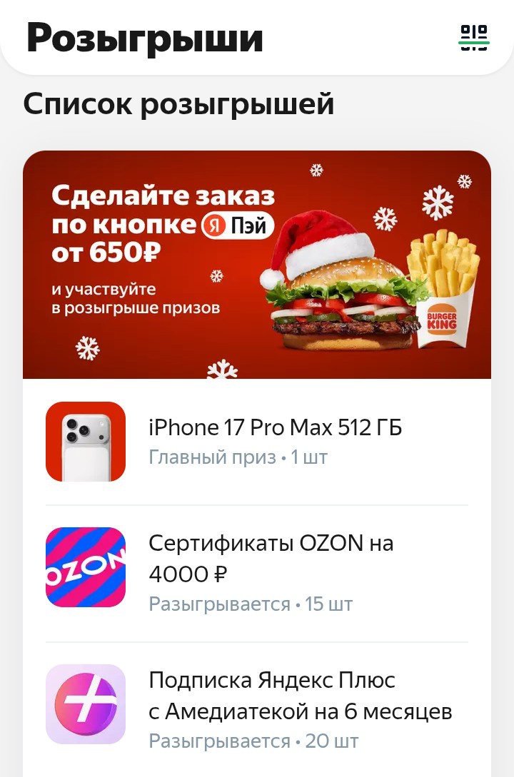 Делайте заказы, оплачивайте Яндекс Пэй, выигрывайте призы!