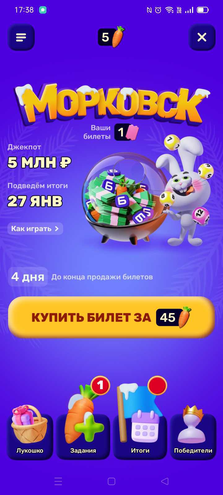 - Получайте билеты за потраченные морковки, которые автоматически обмениваются по установленному курсу.