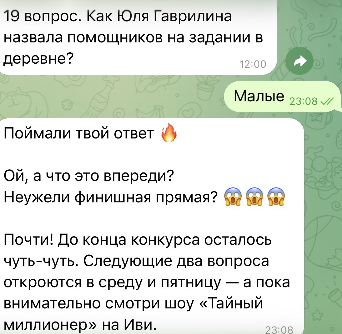 Ответ от бота: "А вот и неделя пролетела! Будь готов в понедельник - новые задания уже на подходе"