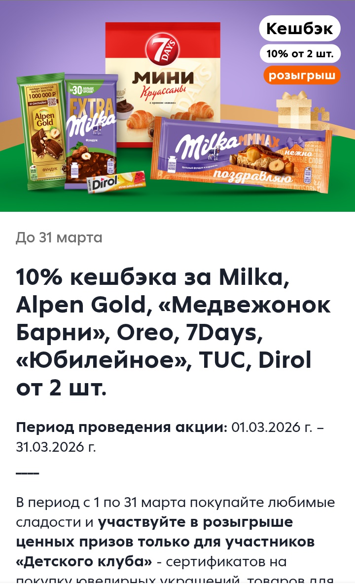 Поздравь себя нежнее в «Детском клубе» в торговой сети «Пятёрочка».