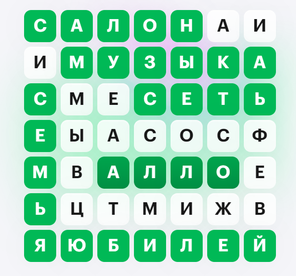2. Салон, музыка, сеть, семья, алло, юбилей