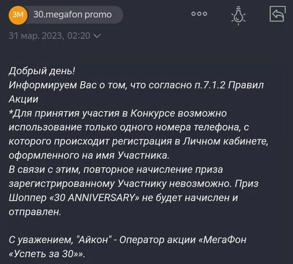 - Сертификат ИМ Мегафон номиналом 30 000 рублей, 200 призов;