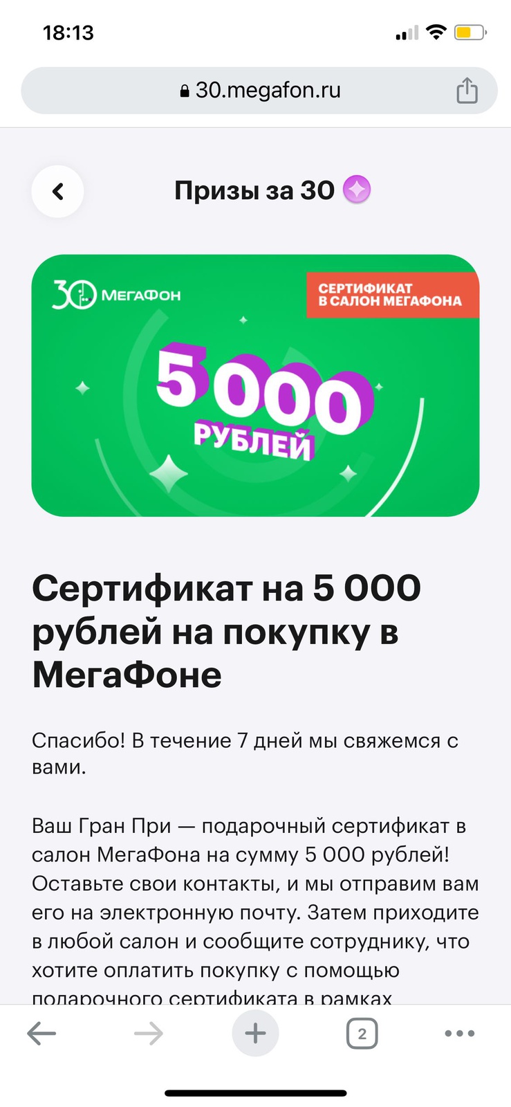 - Сертификат ИМ Мегафон номиналом 1 500 рублей, 5 000 призов;