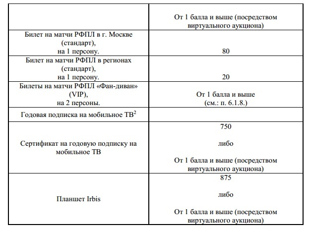 За баллы можно купить билеты на матчи текущего тура РФПЛ или обменять их на гарантированные призы: