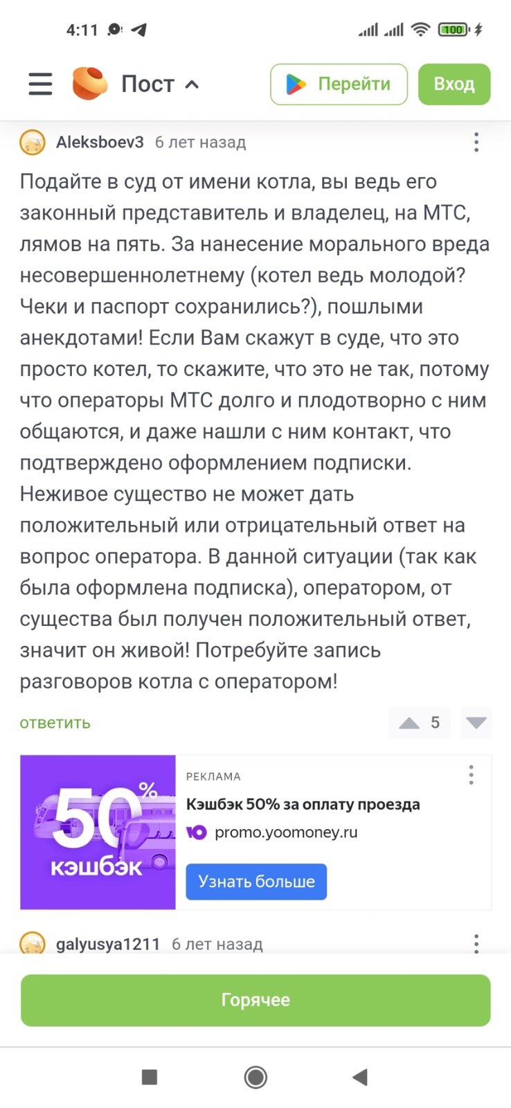 И ещё как-то была ситуация. Я просила вернуть мне архивный тариф, операторы мне отказывали, говорили - Вы, конечно, можете написать заявление в офисе, но будет 100% отказ. В офисе МТС я оказалась через пару месяцев по другой причине, но всё же написала это заявление под смешки работников)) В итоге всё вернули, у меня до сих пор мой любимый тариф))