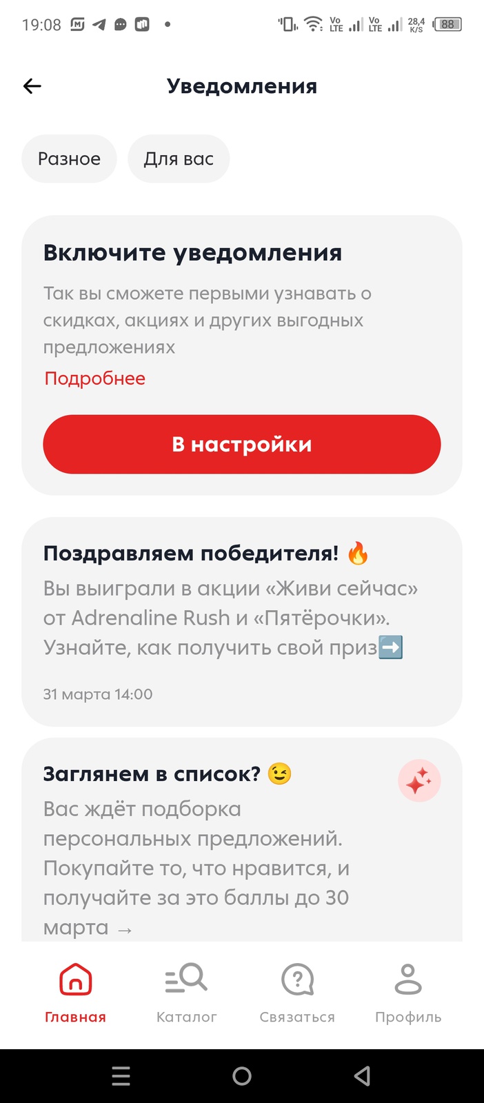 - Гарантированный приз за первую покупку — сертификат «Пятёрочки» на 100 руб.