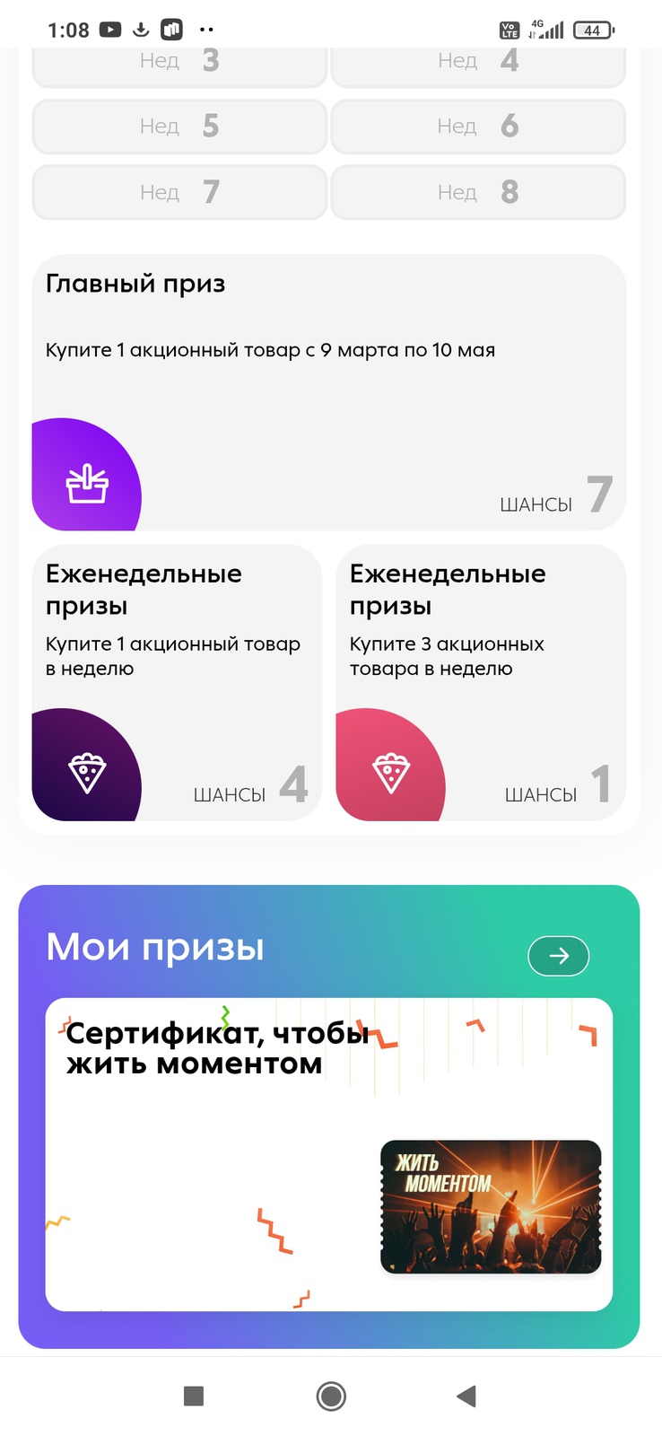 - Еженедельные призы при покупке от 1 шт.: