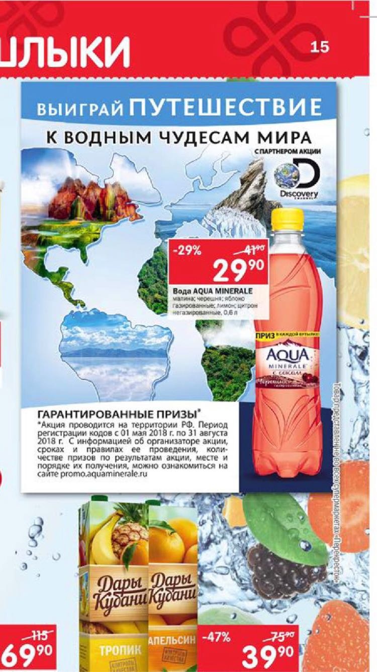 С 1 мая 2018 года участвуй в акции от Aqua Minerale, получи возможность выиграть поездку на двоих. Открой водные чудеса мира!