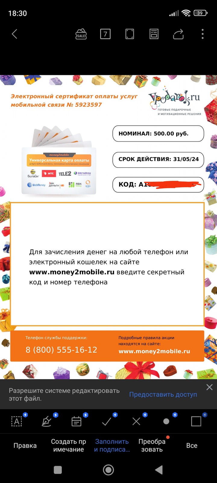 - Электронный Сертификат «Универсальная карта оплаты мобильной связи» 500 рублей - 1040 шт.;