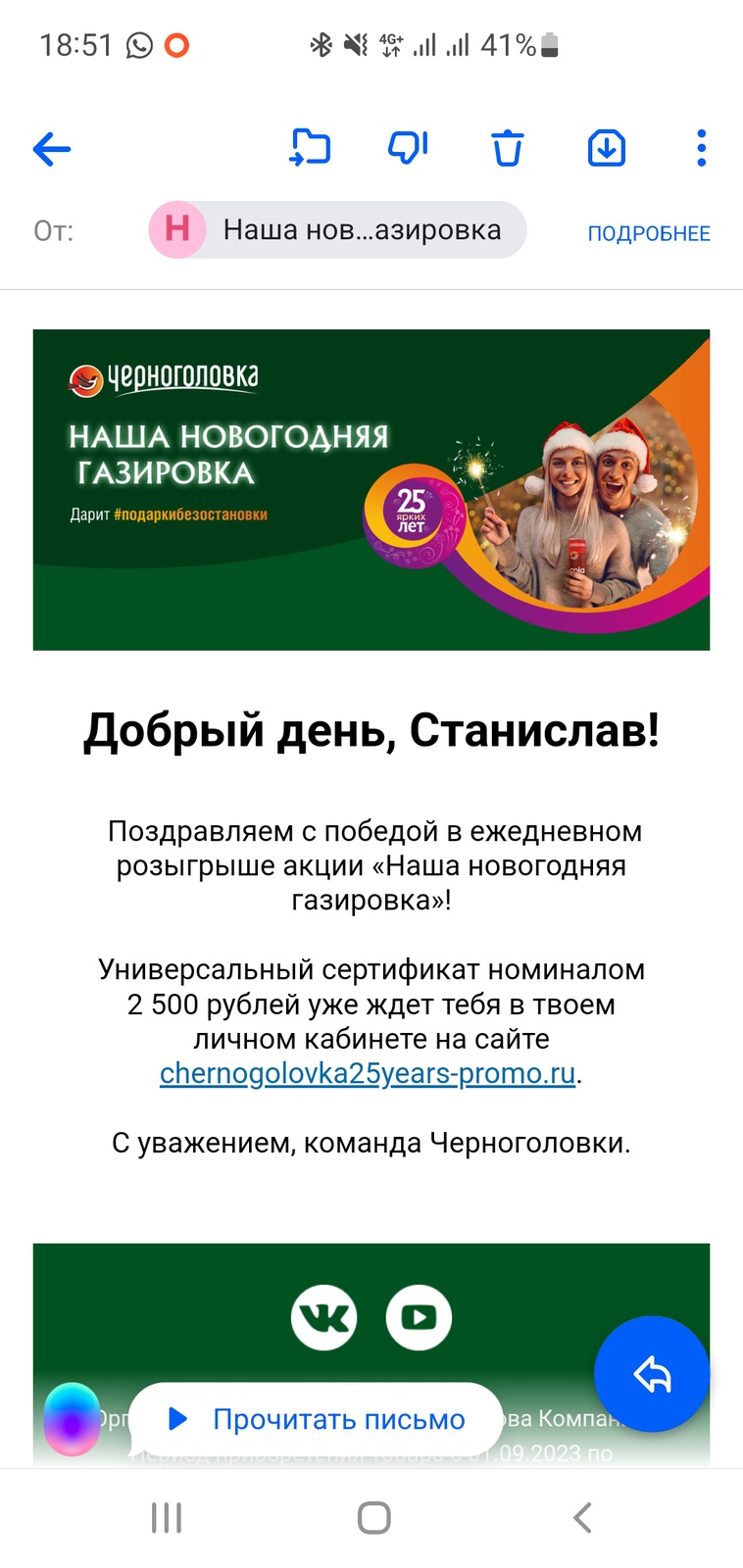 - С 01.11.2023 по 31.12.2023 регистрируй чеки за покупку газировки Черноголовка в сети «Пятерочка» и участвуй в дополнительном розыгрыше эксклюзивных призов!