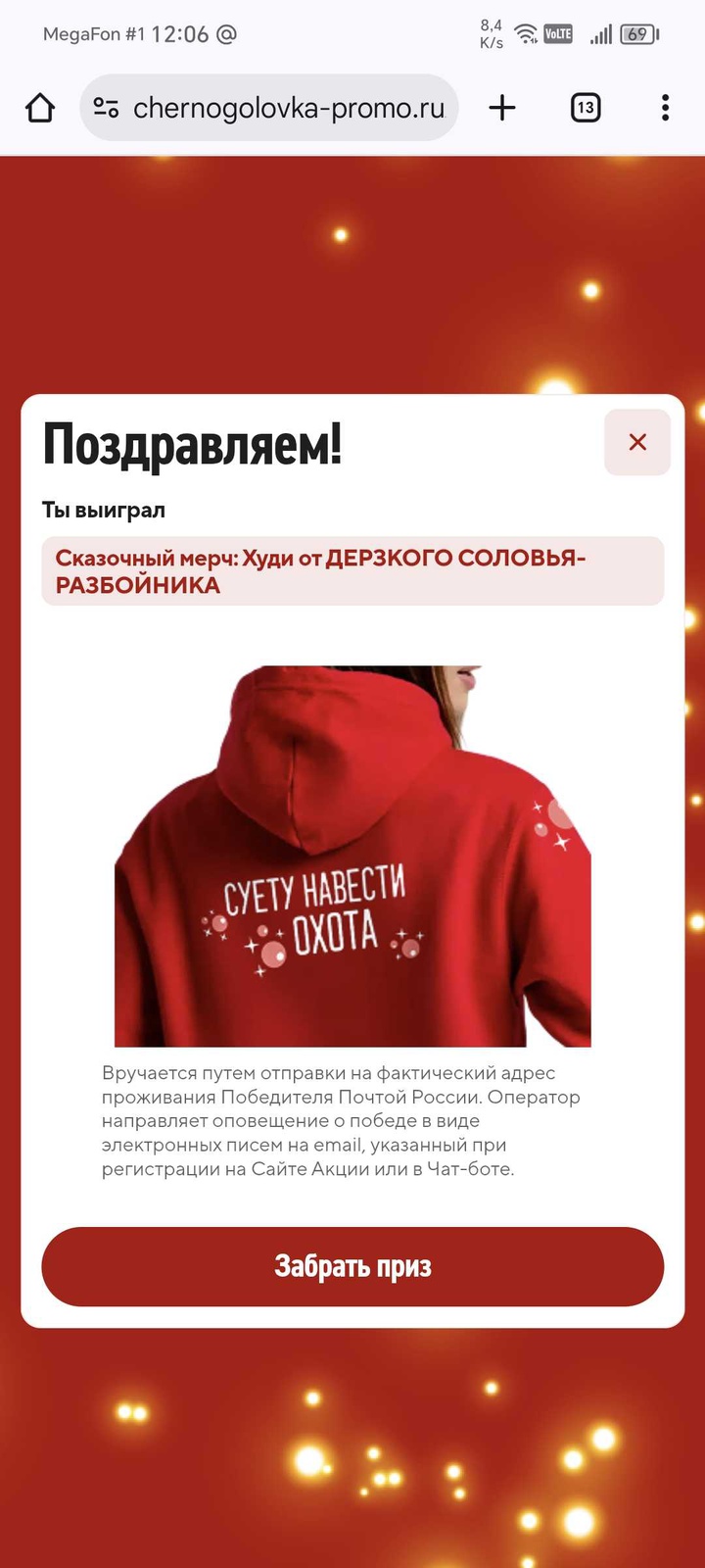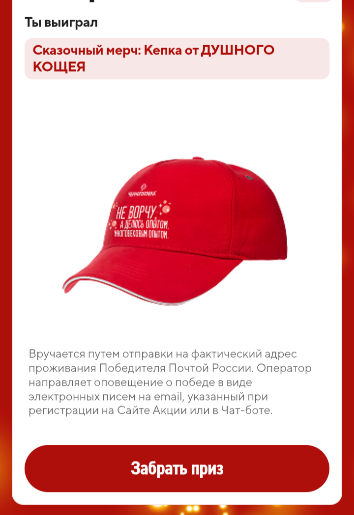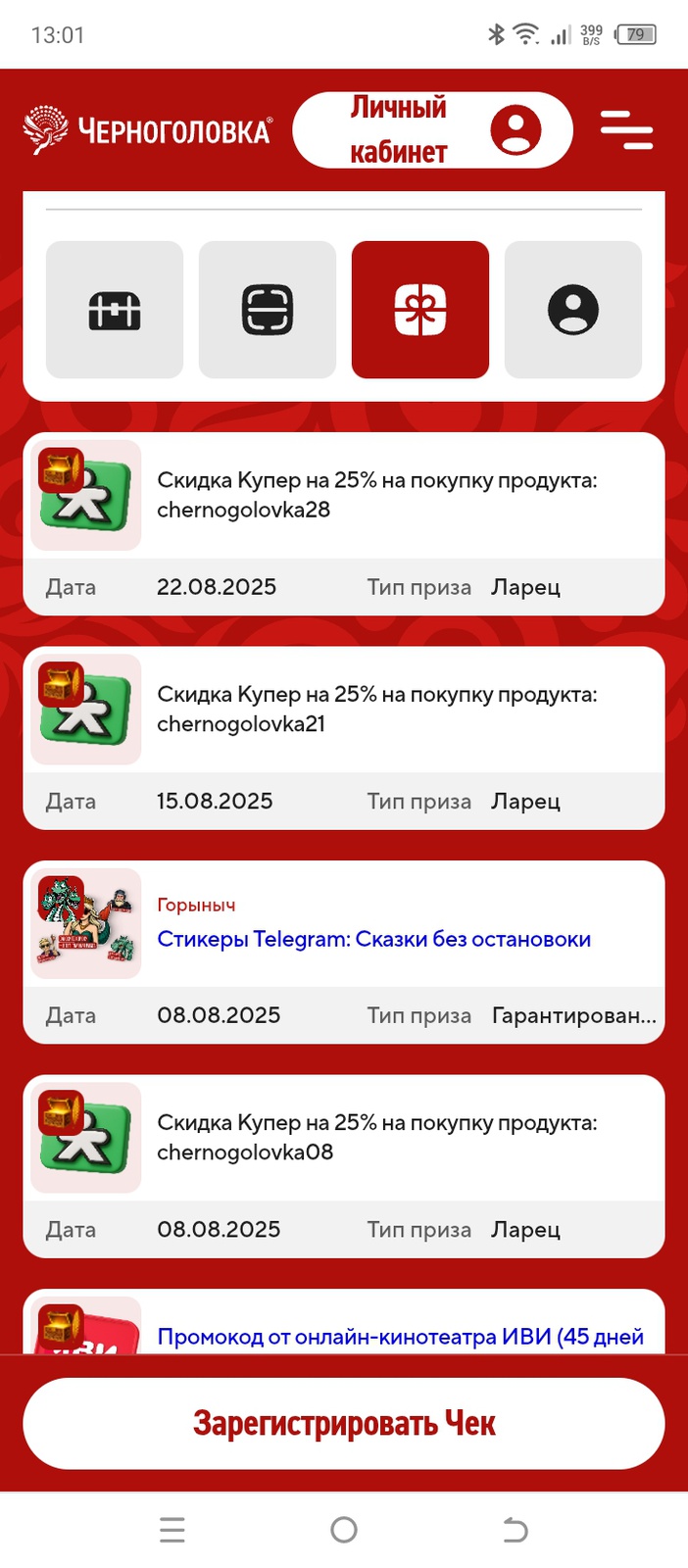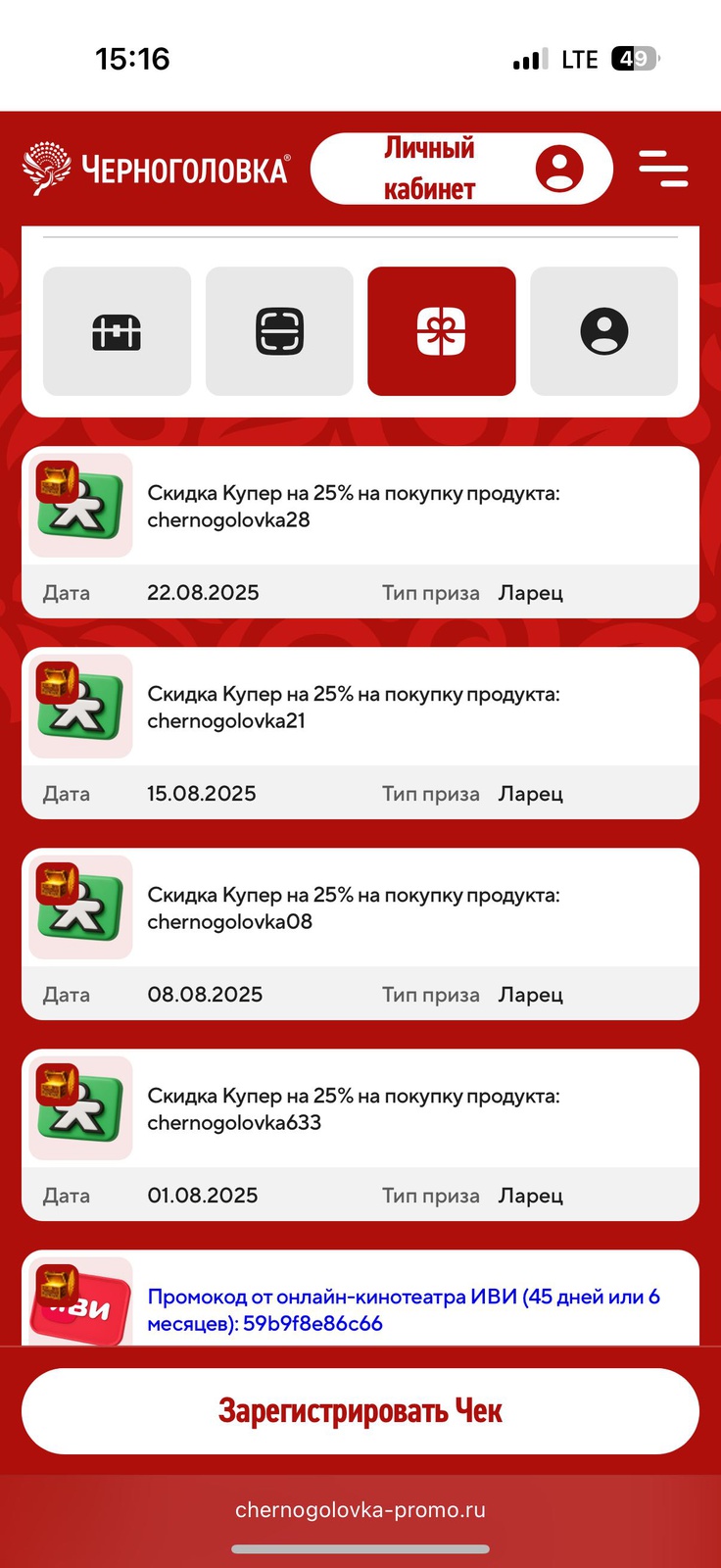 С 15 мая 2025 года участвуйте в акции от Черноголовки. Покупайте продукцию, участвующую в акции, регистрируйте чек и выигрывайте призы.