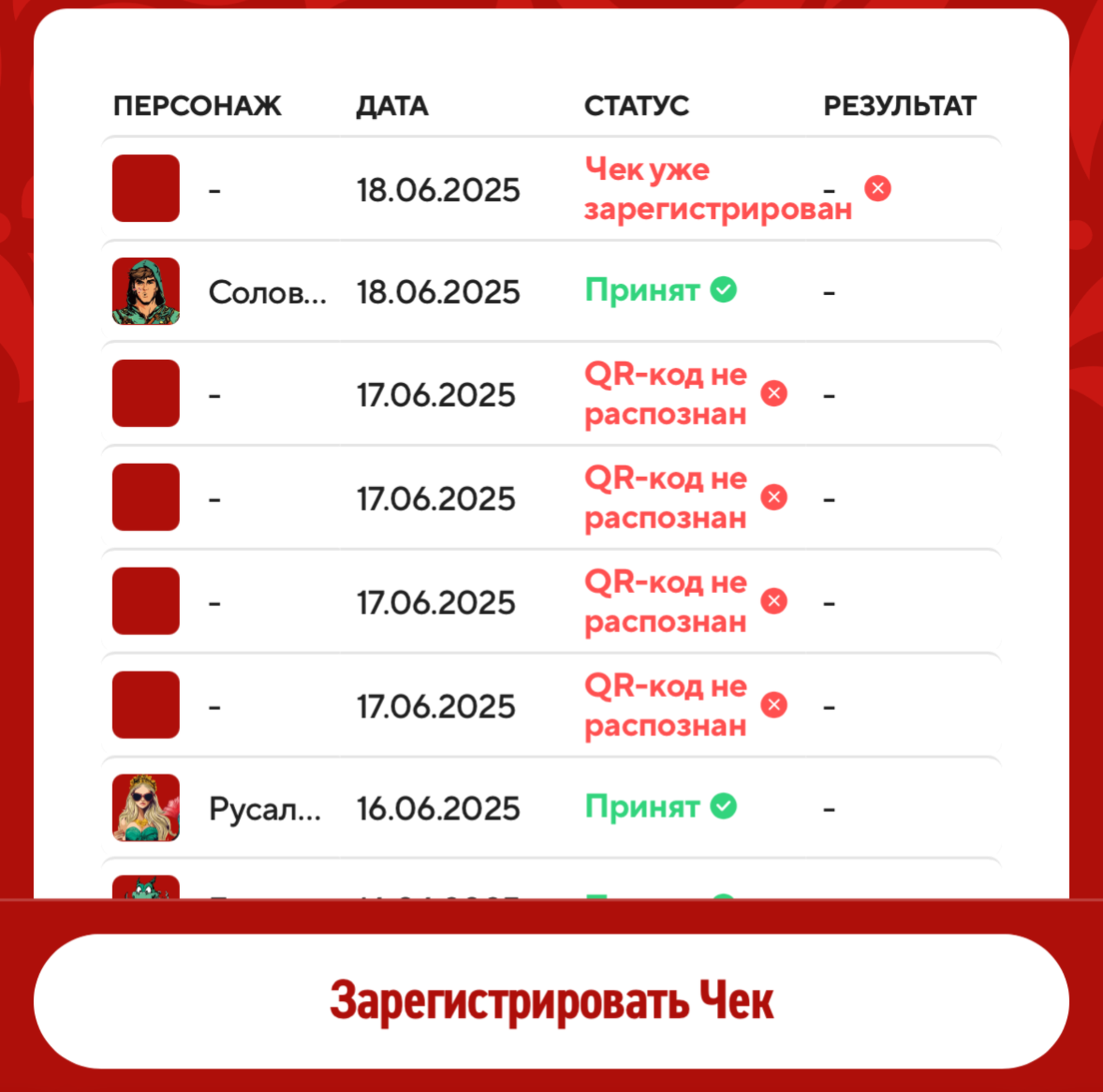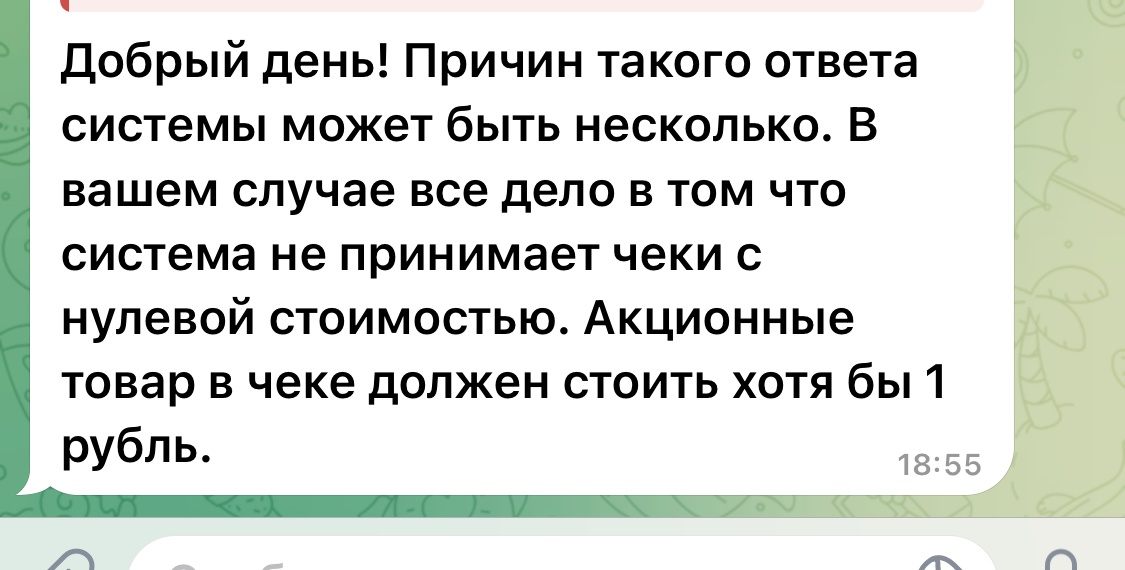 К сожалению, не все чеки проходят автоматическую проверку – в этом случае вы видите сообщение об ошибке валидации чека, после чего ваш чек уходит на ручную модерацию на 3 дня.