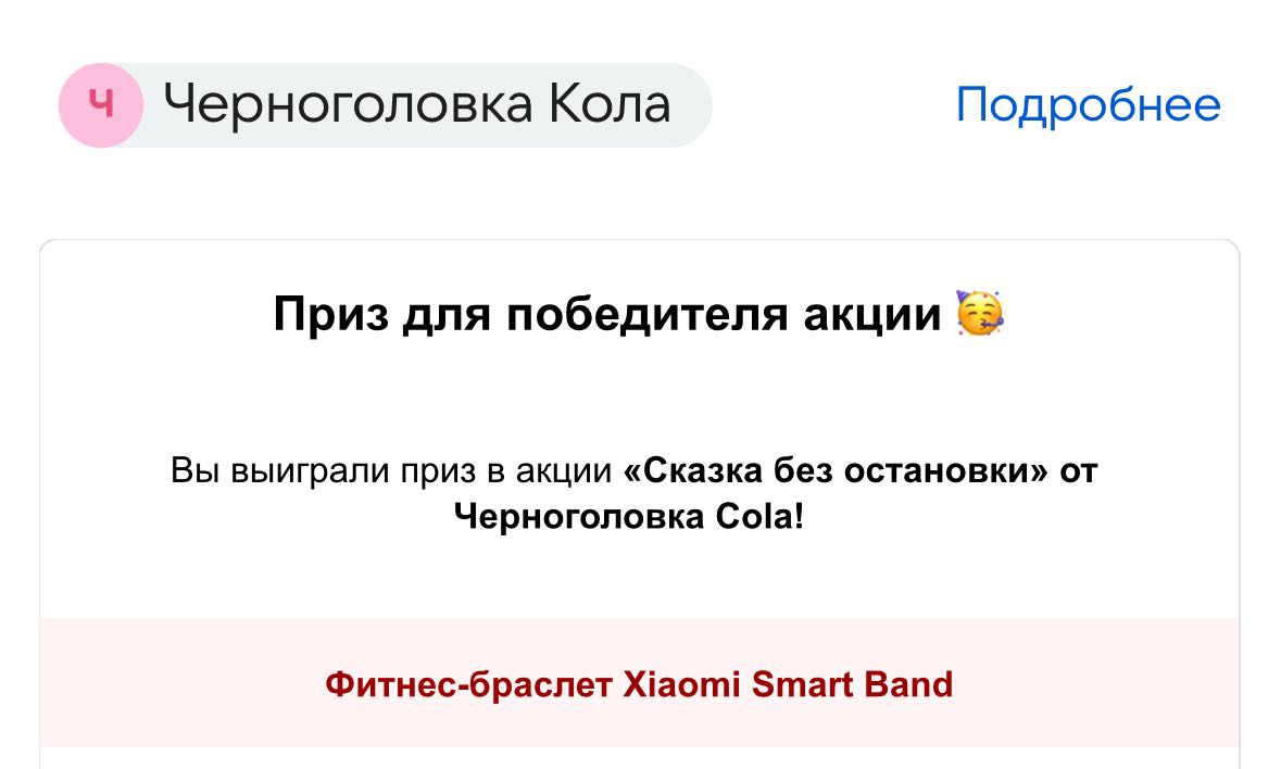 - Купоны на покупку Черноголовка Cola в E-COM номиналом 100 руб. – 52 шт.;