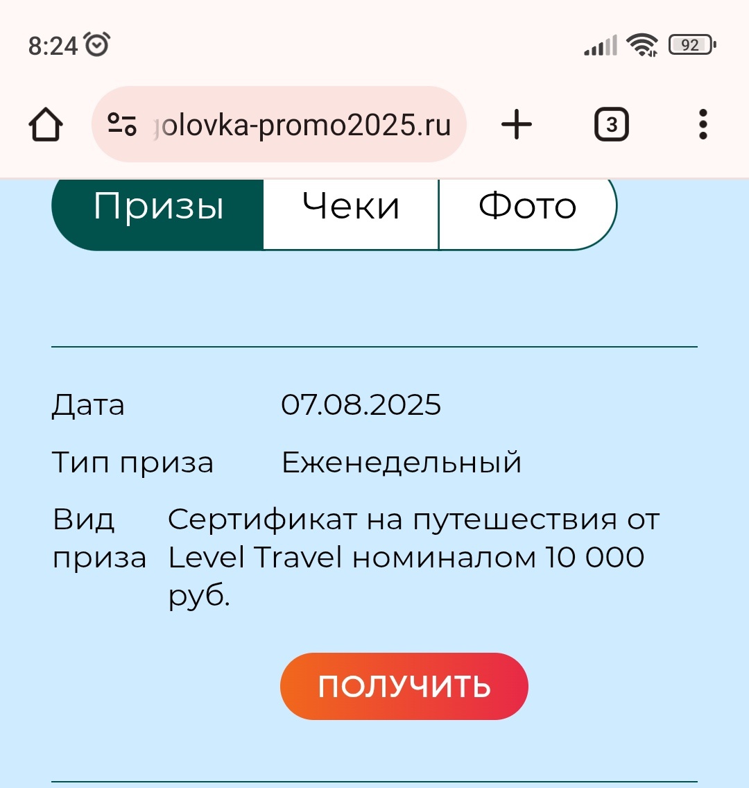 В связи с большим количеством победителей, возможны накладки с отправкой уведомлений.
