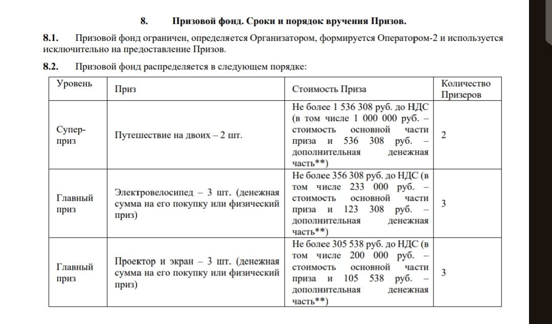 - Электровелосипед (денежная сумма на его покупку или физический приз) - 3 шт.;