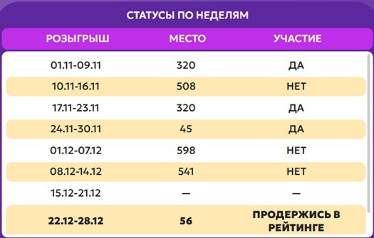 - Дополнительная Заявка для участия в розыгрыше Еженедельных призов;