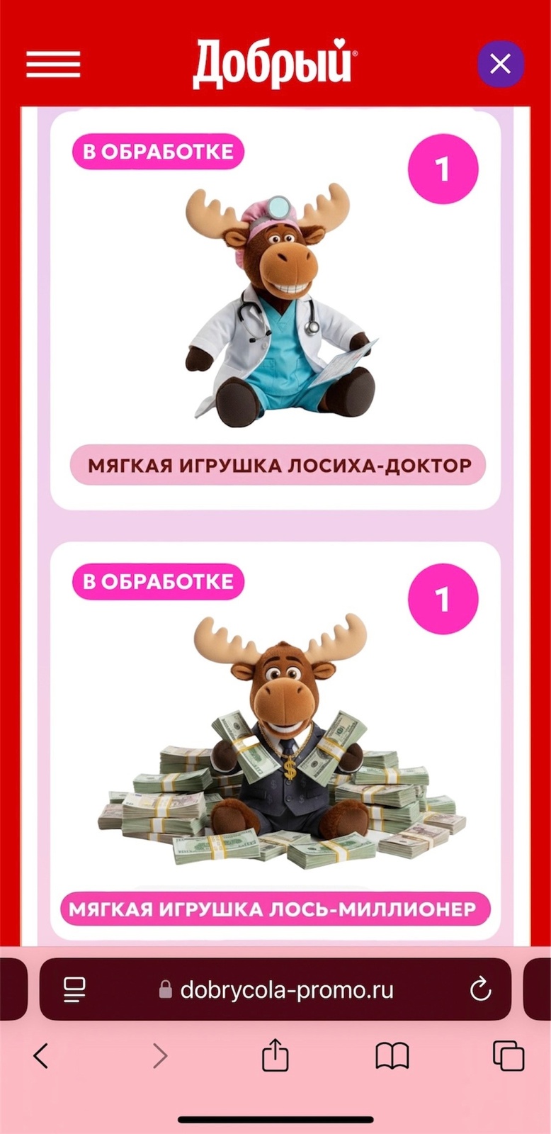 - 10 баллов - Игрушка-лосик «Мечтатель»/«Заводила»/«Красотка»;