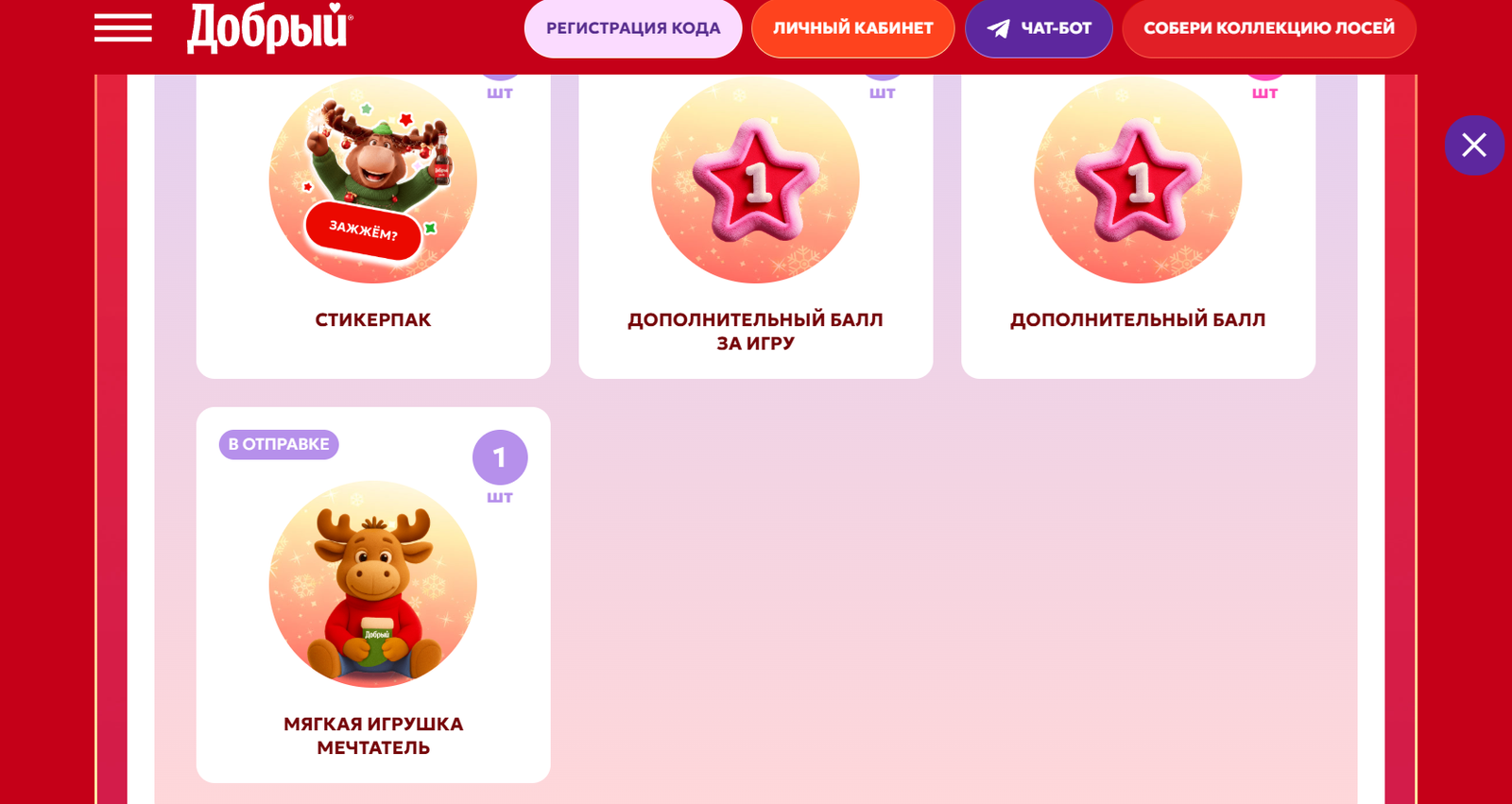 Первый итог, в личном кабинете с пяти кодов стикерпак и один доп. балл