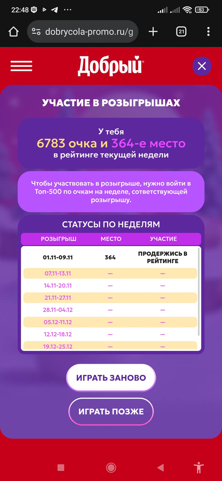Внимание! Данная акция завершилась. Перейти на текущую акцию Добрый «Выиграйте 1 миллион на путешествие мечты!» 2025 →