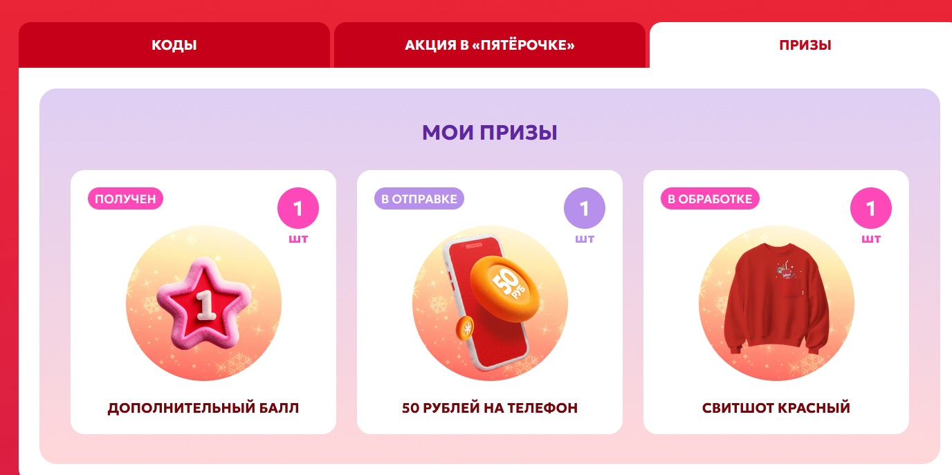 - Призы за баллы: