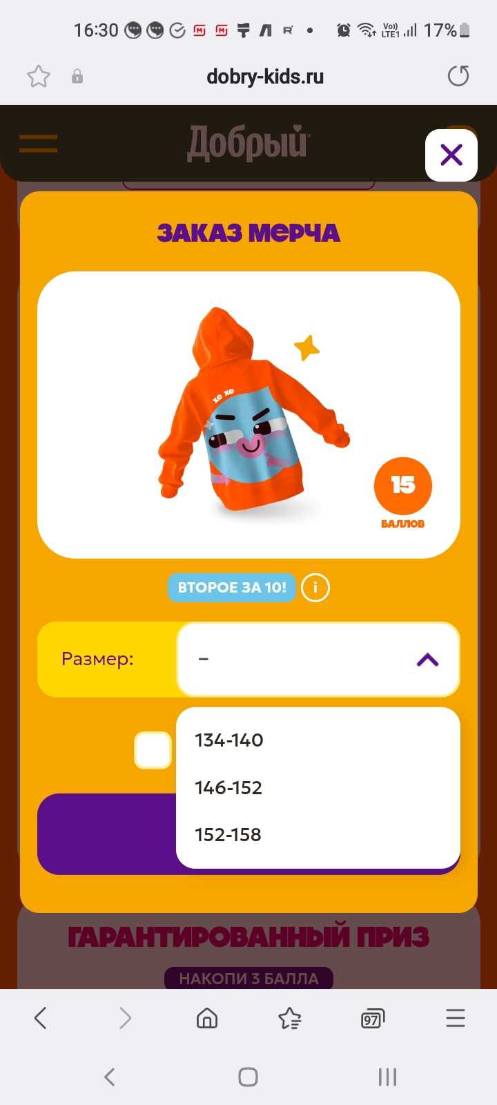 - Худи детское – 1 штука за 15 баллов, второе для друга – за 10 баллов.