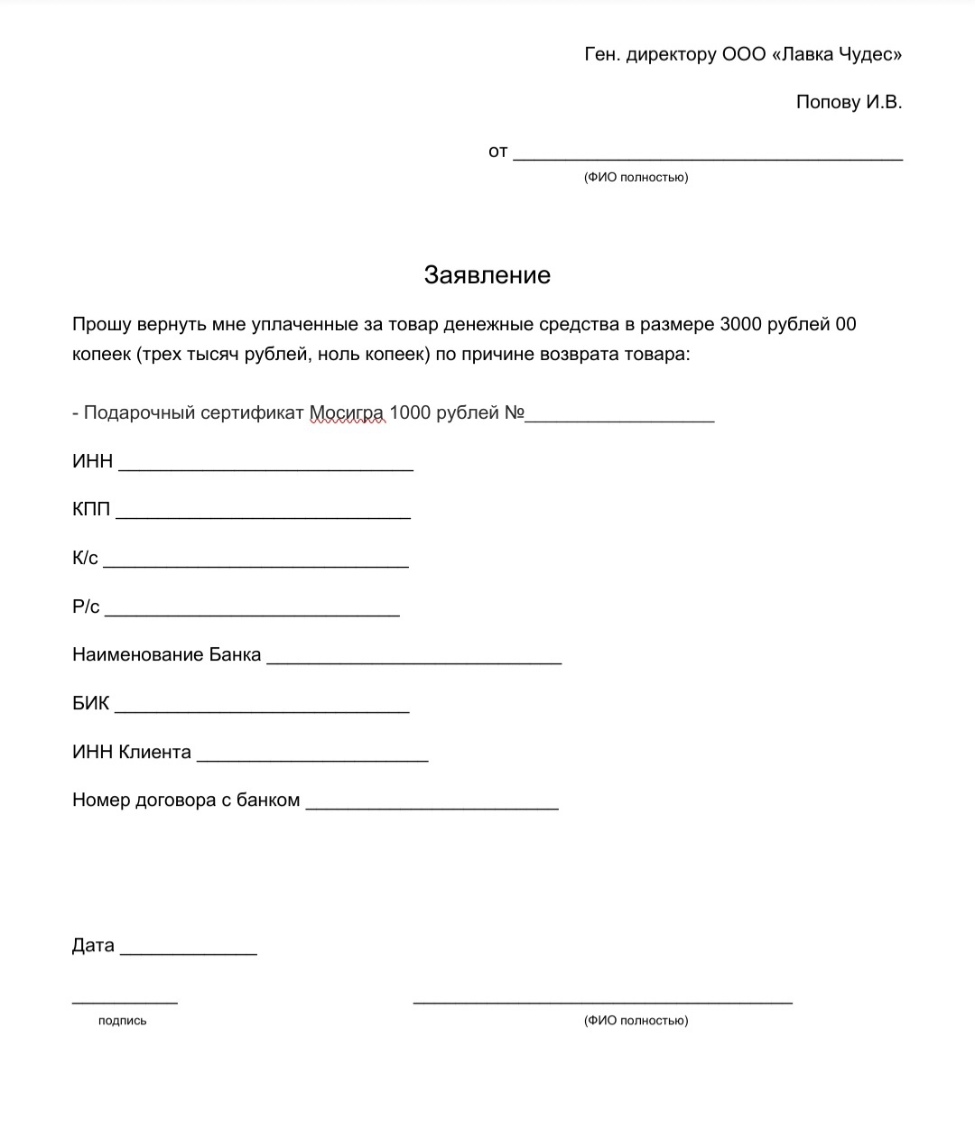 Я по вашему шаблону заявление отправила