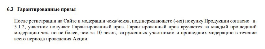 5.1.2, участник получает Гарантированный приз. Гарантированный приз вручается за каждый прошедший