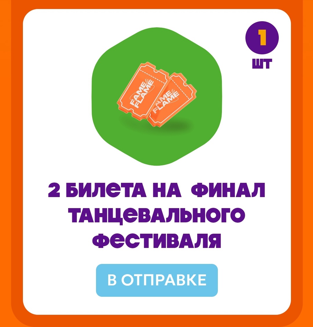 - 2 билета на посещение Гранд-финала танцевального чемпионата «Fame to flame» 8 ноября 2025 года в Москве;