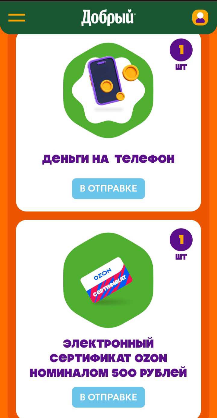 - Сертификаты «Ozon» номиналом 500 и 1 000 руб.;