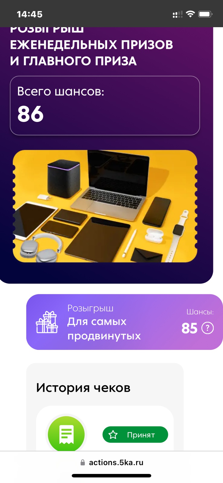 - Сертификат на 400 000 руб. на покупку гаджетов и электроники - 5 шт.