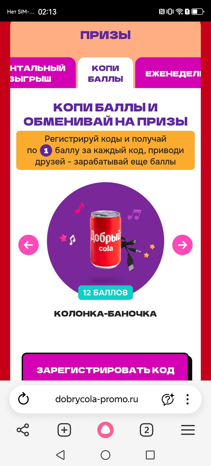 - Еженедельный приз: