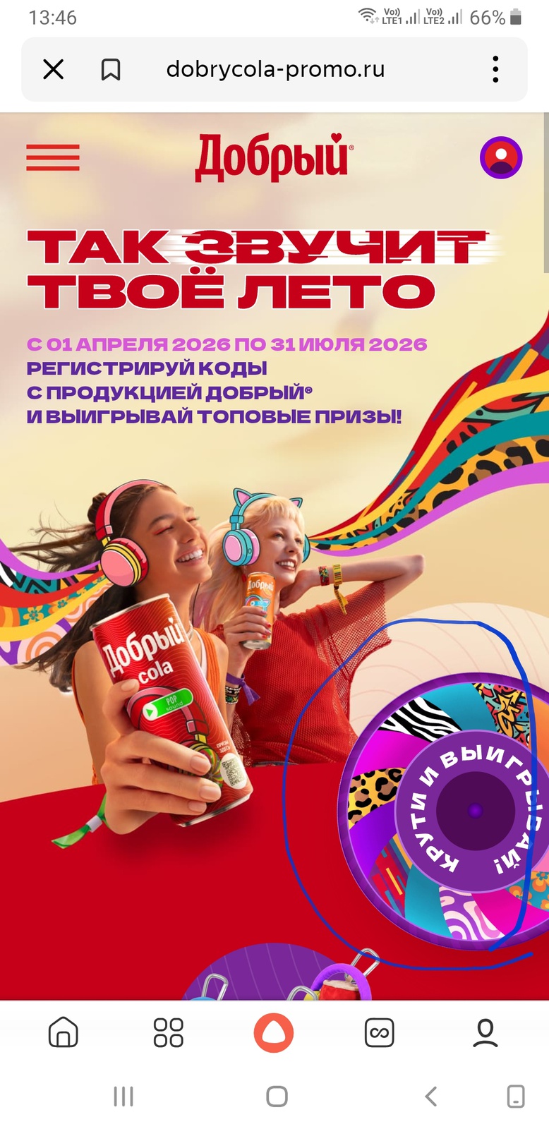 С 1 апреля 2026 года примите участие в новом промо от напитков Добрый! Покупайте напитки Добрый в промо-упаковке, активируйте код и участвуйте в розыгрыше призов!
